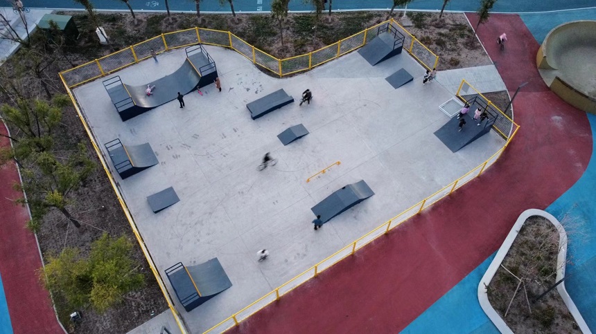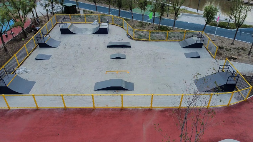 廣闊的滑板場(chǎng)地設(shè)計(jì)別具匠心,800多平面的街式場(chǎng)地區(qū)域、U型槽、小弧坡、小斜坡、雙斜坡、大小出發(fā)臺(tái)、大小拋出臺(tái)、跳箱、盒子、跳桿、坡跳臺(tái)各種都有。彎曲的曲線道、陡峭的坡道和各種令人眼花繚亂的障礙設(shè)施,處處挑戰(zhàn)滑手們的技藝和勇氣。無論是新手還是經(jīng)驗(yàn)豐富的滑板高手,都能在這里找到適合自己的挑戰(zhàn),一次又一次突破自我,感受成功的喜悅。